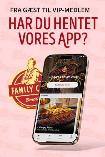 Bone’s er indbegrebet af ‘The old America’, hvor amerikansk BBQ-kultur møder dansk kvalitet og god service. Prøv vores saftige spareribs, møre steaks eller lækre burgere med sprøde pommes. Du kan også dykke ned i vores store friske ta’ selv-salatbar eller spise al den softice, du kan til dessert.