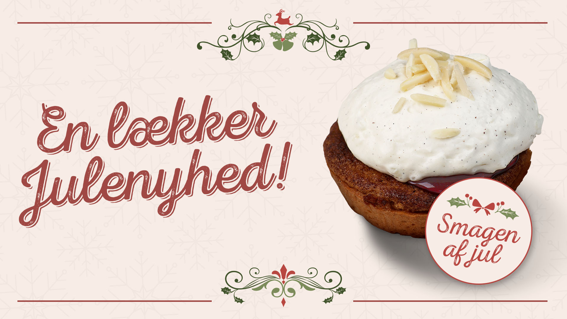 Årets Nøddekage med Risalamande består af en nøddebund med syltede kirsebær og en cremet risalamande-mousse – en sød og uimodståelig afslutning på måltidet.