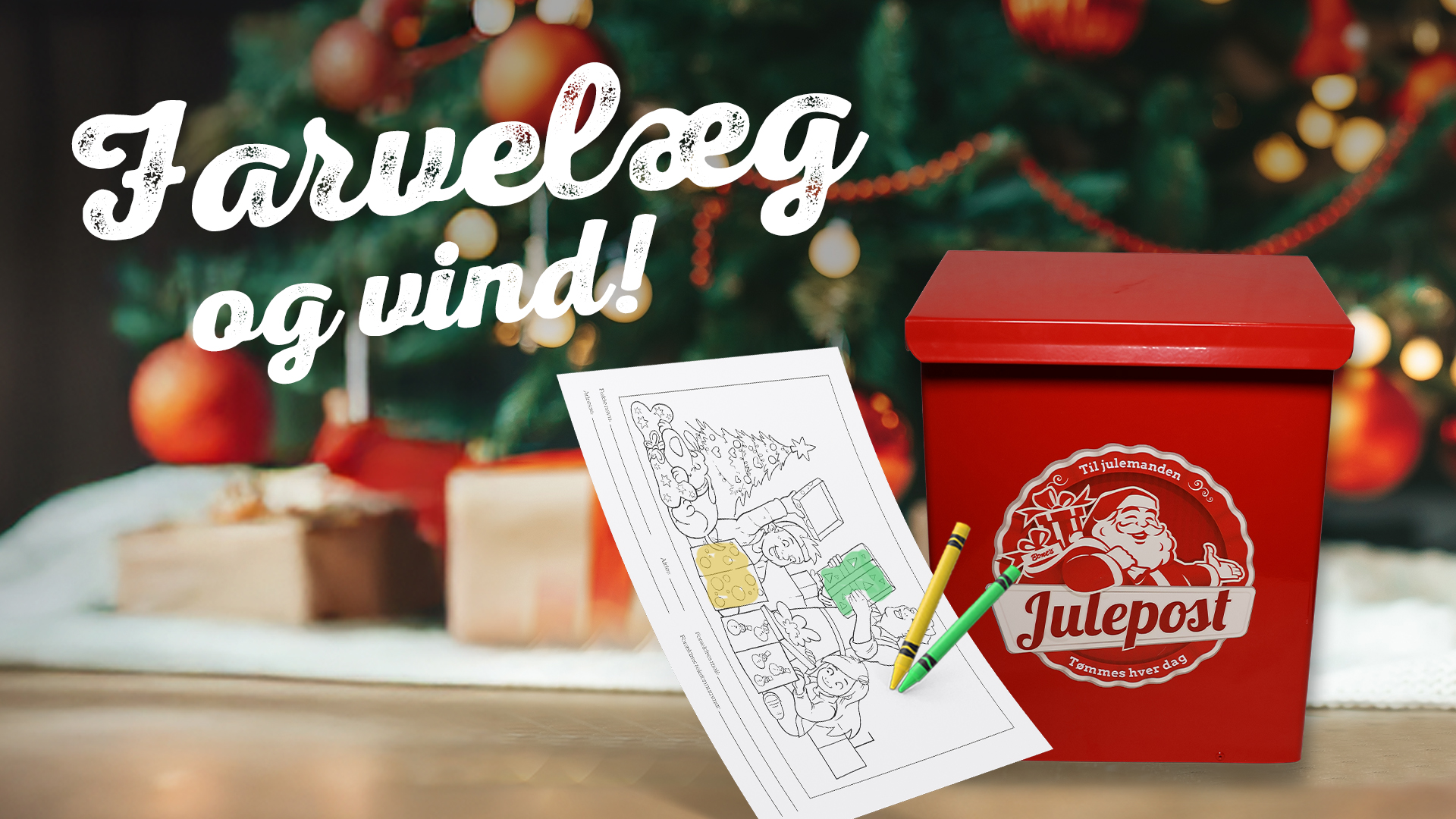 Tegn, ønsk og send din julehilsen til julemanden gennem den røde postkasse!
